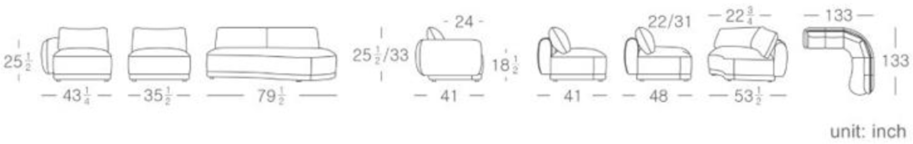 133W X 133D X 33H